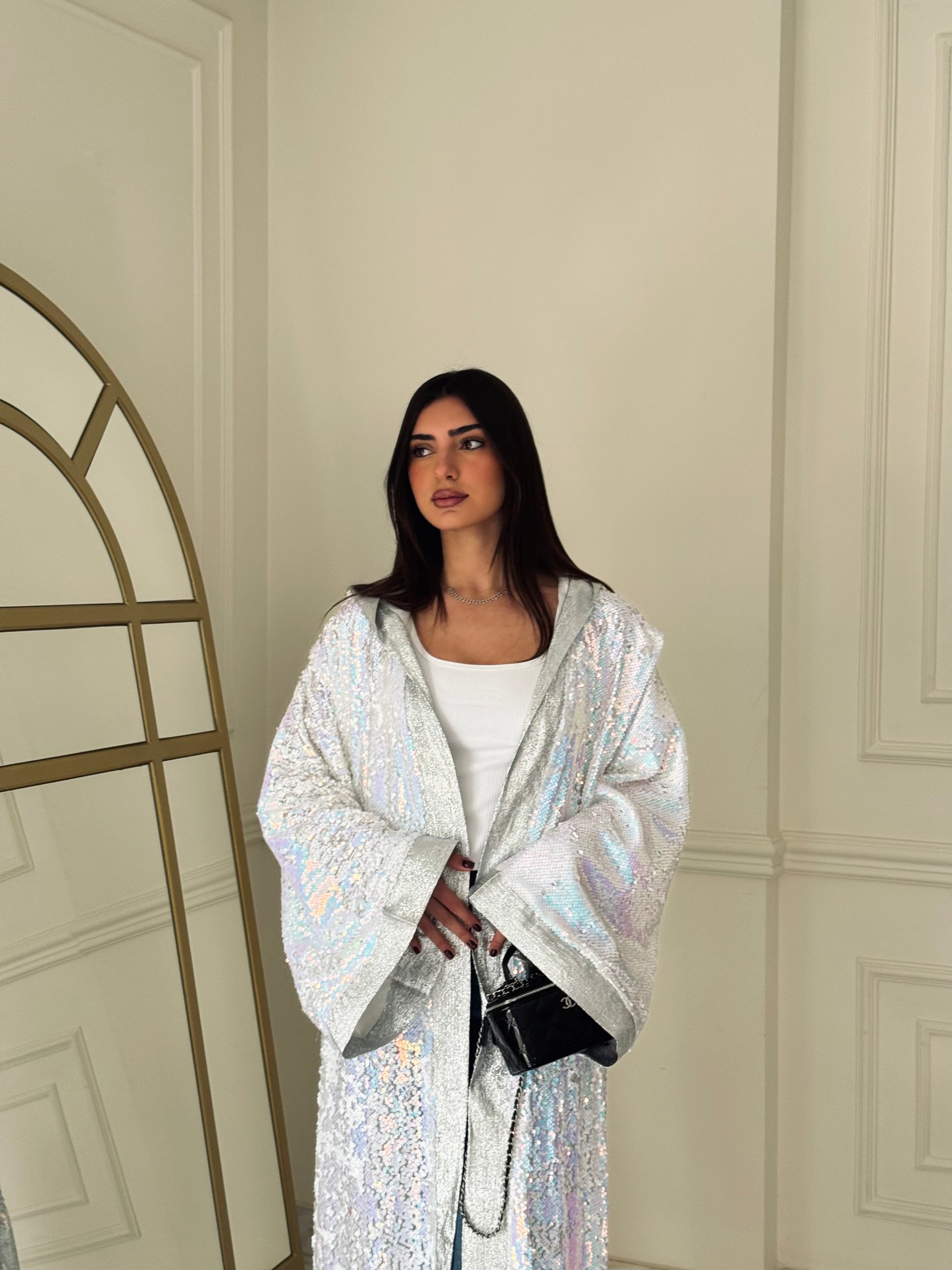Get ready to shine and add some glamour to your Ramadan nights with our Diamond Kimono! This sequined silver kimono will have you sparkling and standing out from the crowd. Perfect for those who don't take themselves too seriously and want to add some fun to their wardrobe.