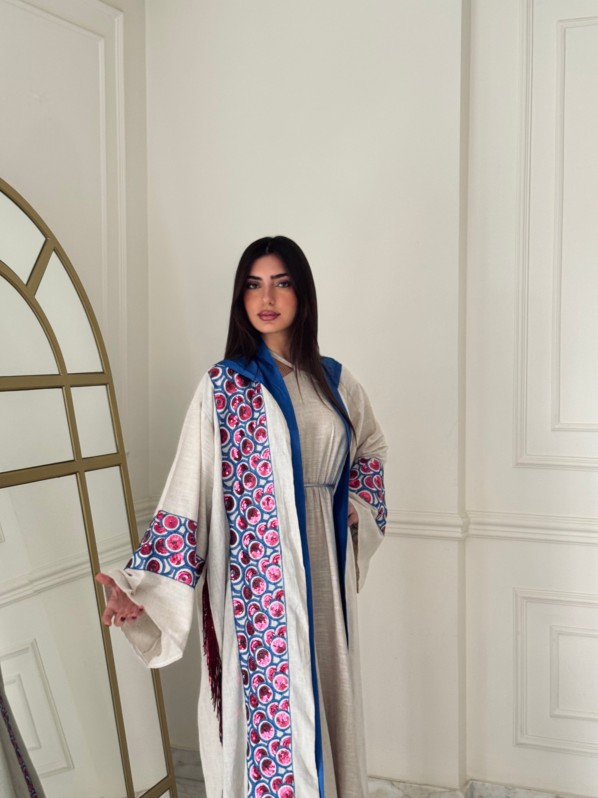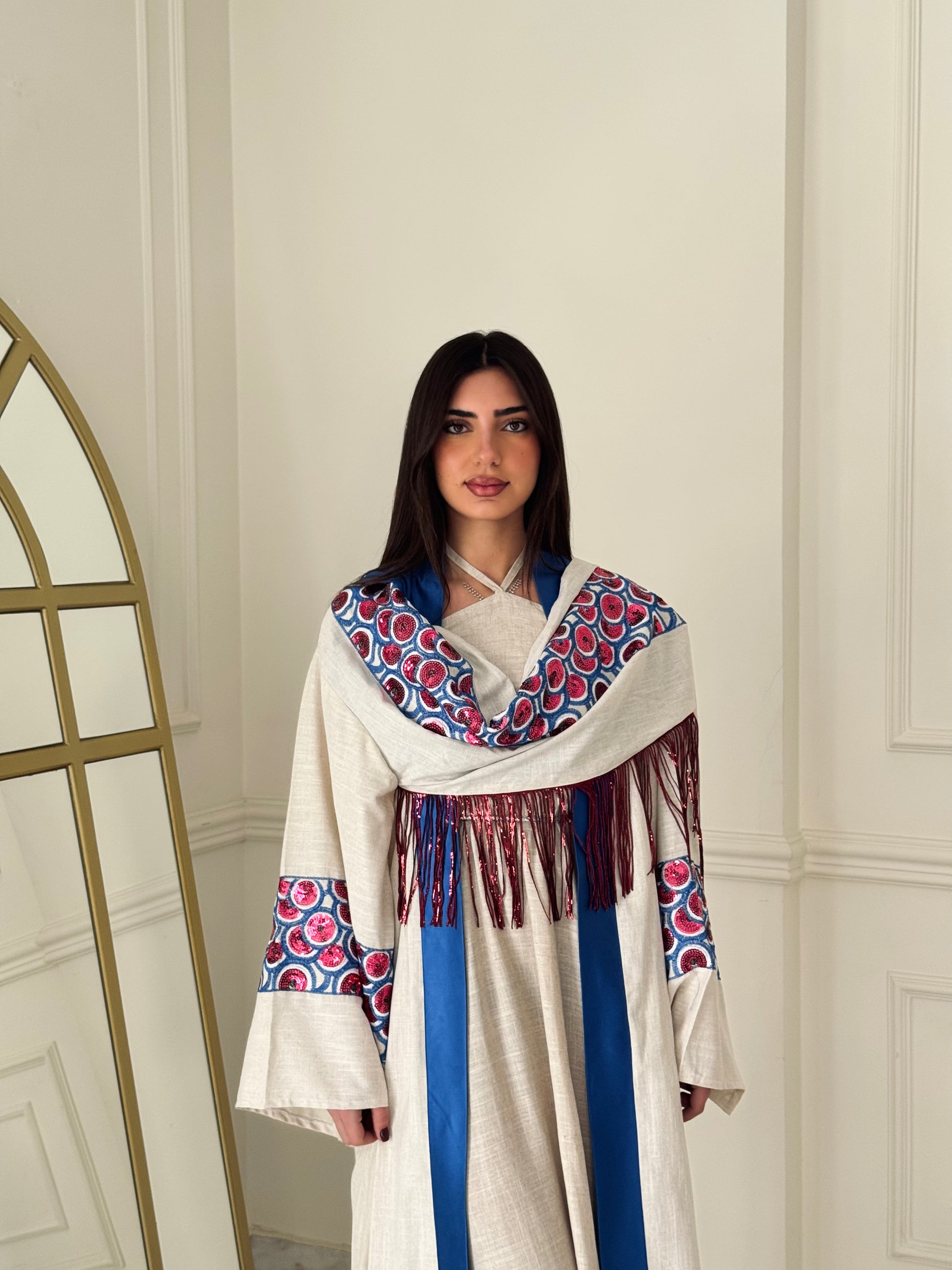 Bringing together bold prints, rich blue hues, and a luxurious drape for an effortlessly regal look. Designed with intricate embroidered details and a lightweight feel, this piece is both versatile and timeless. Perfect for styling over casual or formal outfits, it adds a sophisticated yet playful touch to any wardrobe.