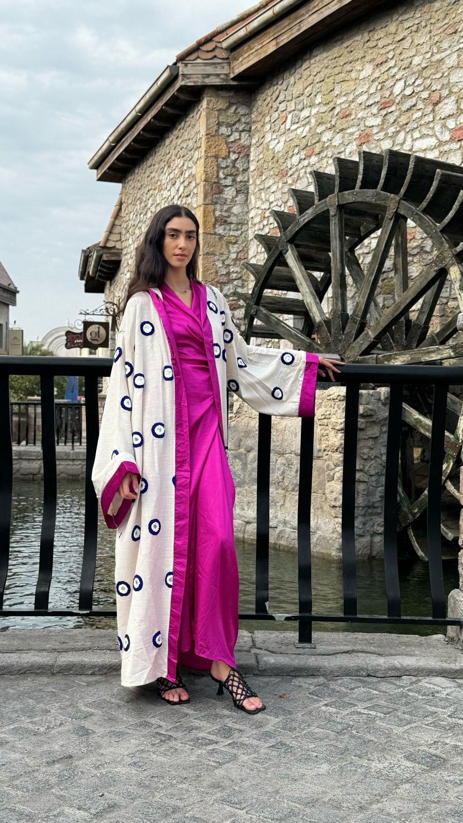 A rose-colored sleek dress that exudes elegance and luxury. Effortlessly styled with a kimono, this exclusive piece will make a statement at any event. Please note, the dress is sold separately without a kimono. Elevate your wardrobe with this must-have dress.